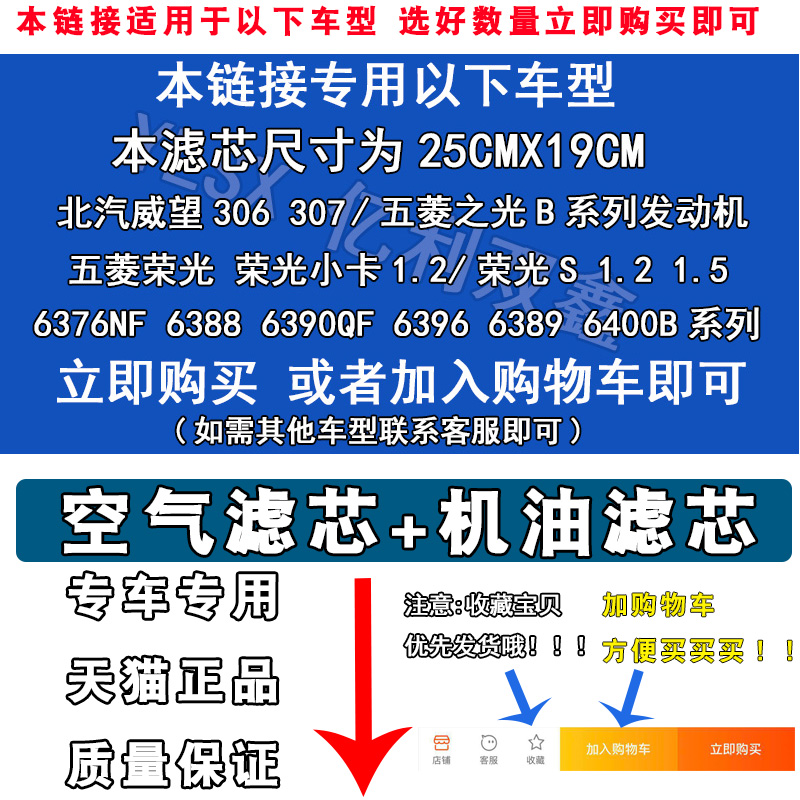 6388 适配五菱之光荣光S 6390 鸿途 6396机油滤芯空气滤芯 6376NF