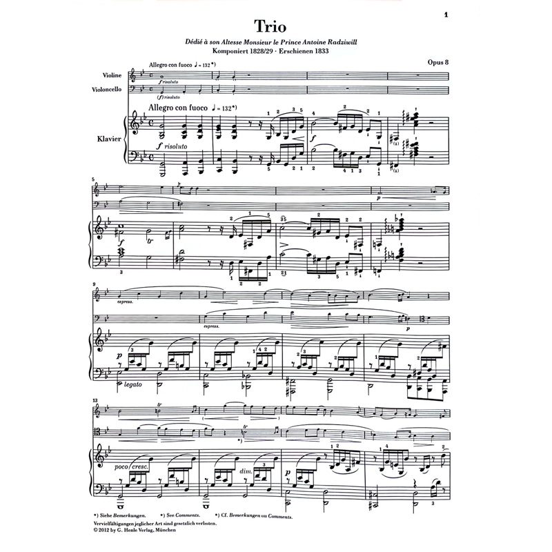 肖邦 Piano 亨乐原版 小提琴大提琴和钢琴 op. G小调钢琴三重奏op8 HN1068 Chopin minor Trio