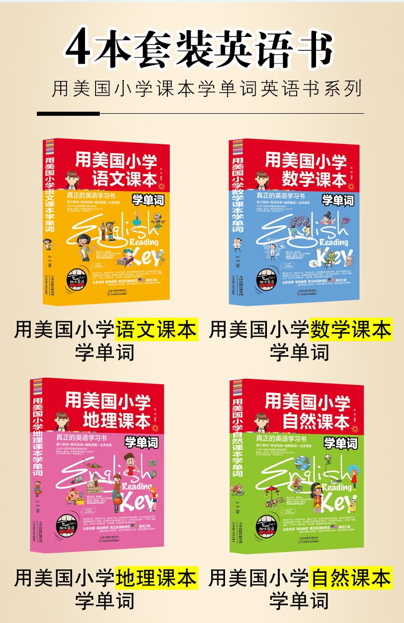 4册 英汉双语读物小学生英语课外读物单词记忆法小学生英语学习书籍自学英语单词教材书籍 用美国小学地理课本语文数学自然学单词