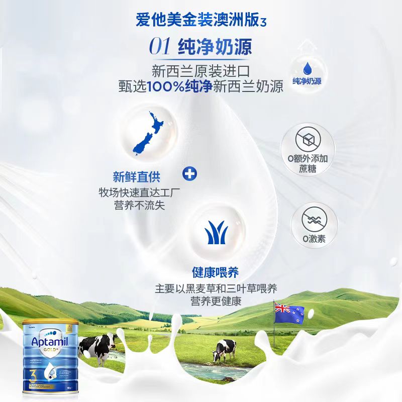 1罐 2岁婴幼儿配方奶粉900g aptamil澳洲爱他美金装 3段新西兰1