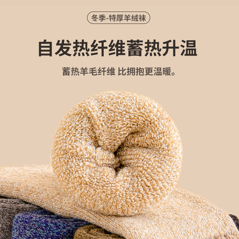 羊毛袜加厚袜子男冬季 中筒东北冬天特厚羊绒棉袜 加绒超厚保暖男士