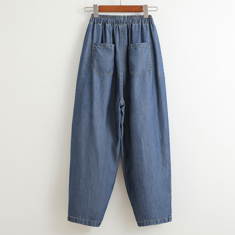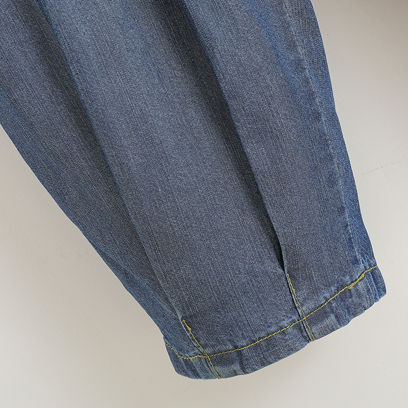 薄冰丝哈伦裤 2022年新款 女九分高腰老爹夏季 天丝萝卜牛仔裤 超大码