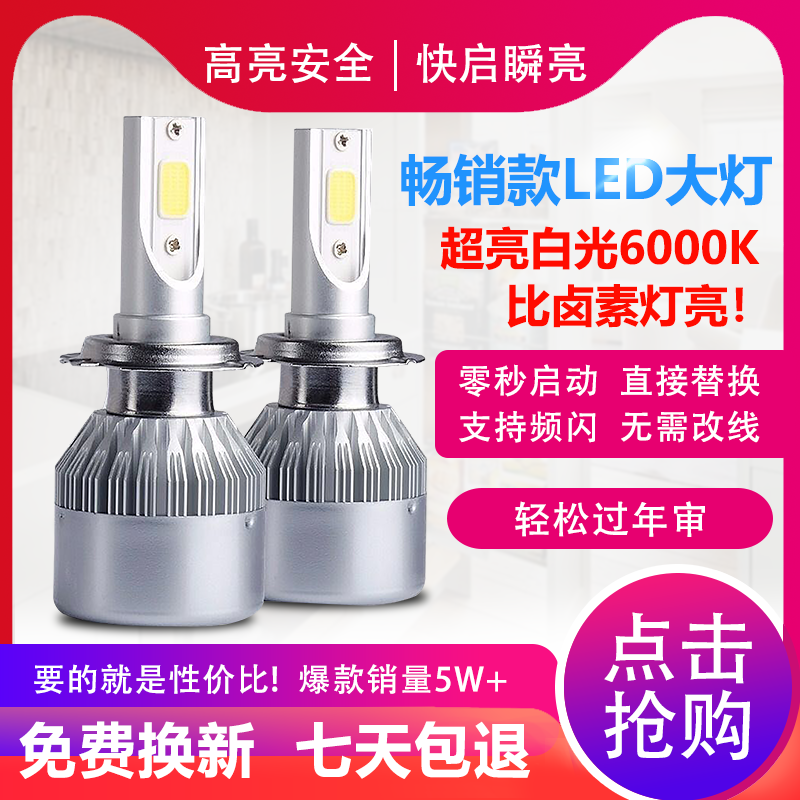 h7H4 led大灯泡远近一体自带双光h7H1H4汽车货车摩托车通用超亮
