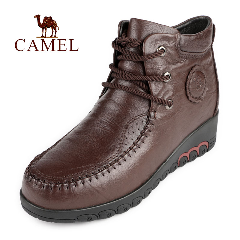 新款 冬季 真头层牛皮加绒保暖坡跟舒适休闲妈妈靴子 骆驼女鞋 Camel