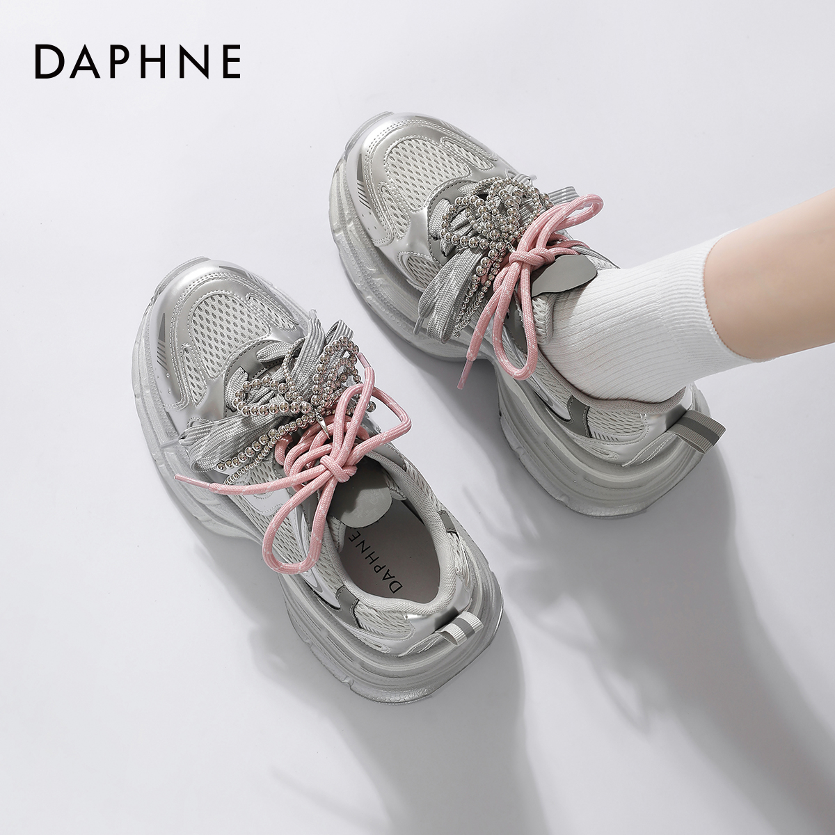 女款 厚底加绒增高休闲运动鞋 2025爆款 新款 秋冬季 达芙妮灰色老爹鞋