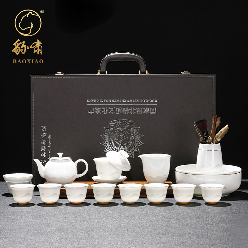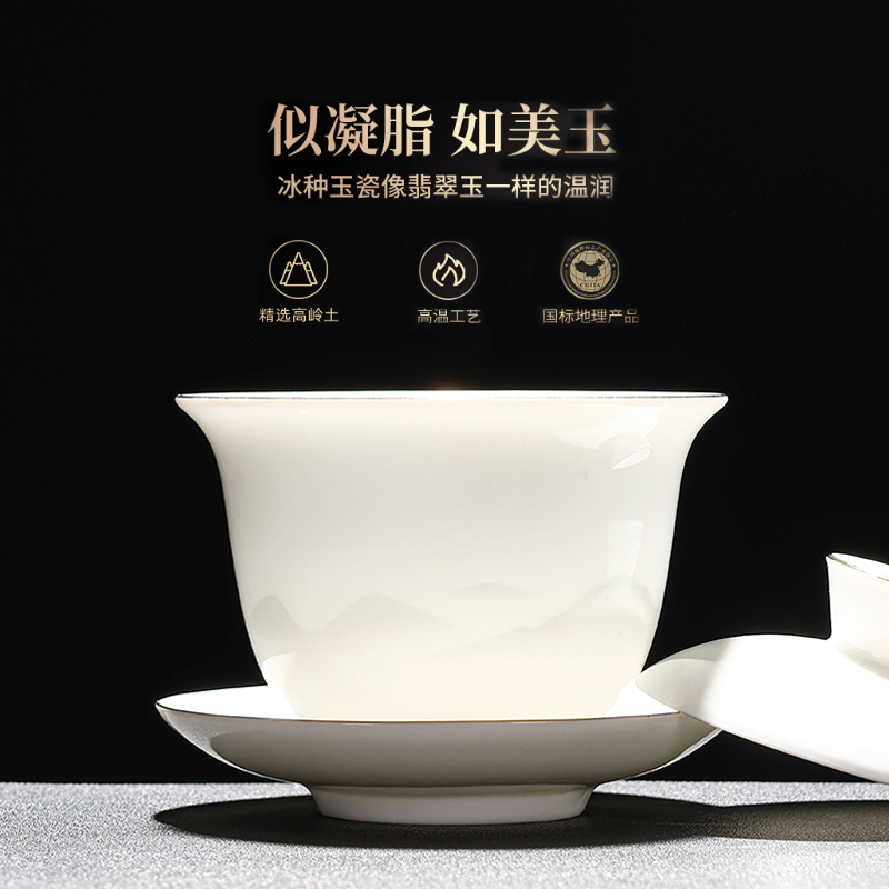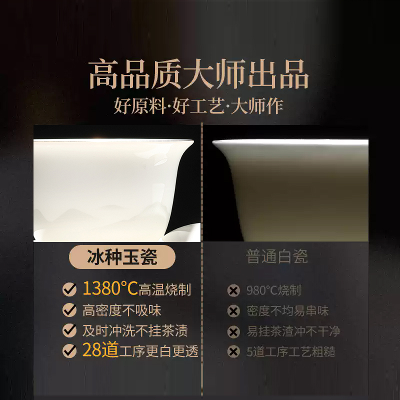 礼盒装 新款 高档功夫茶具套装 景德镇官方陶瓷浮雕山水三才盖碗中式
