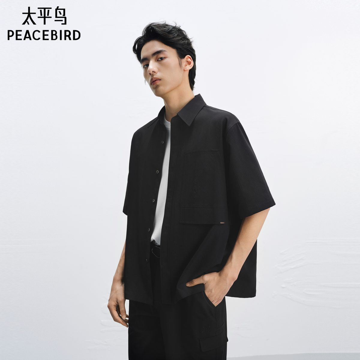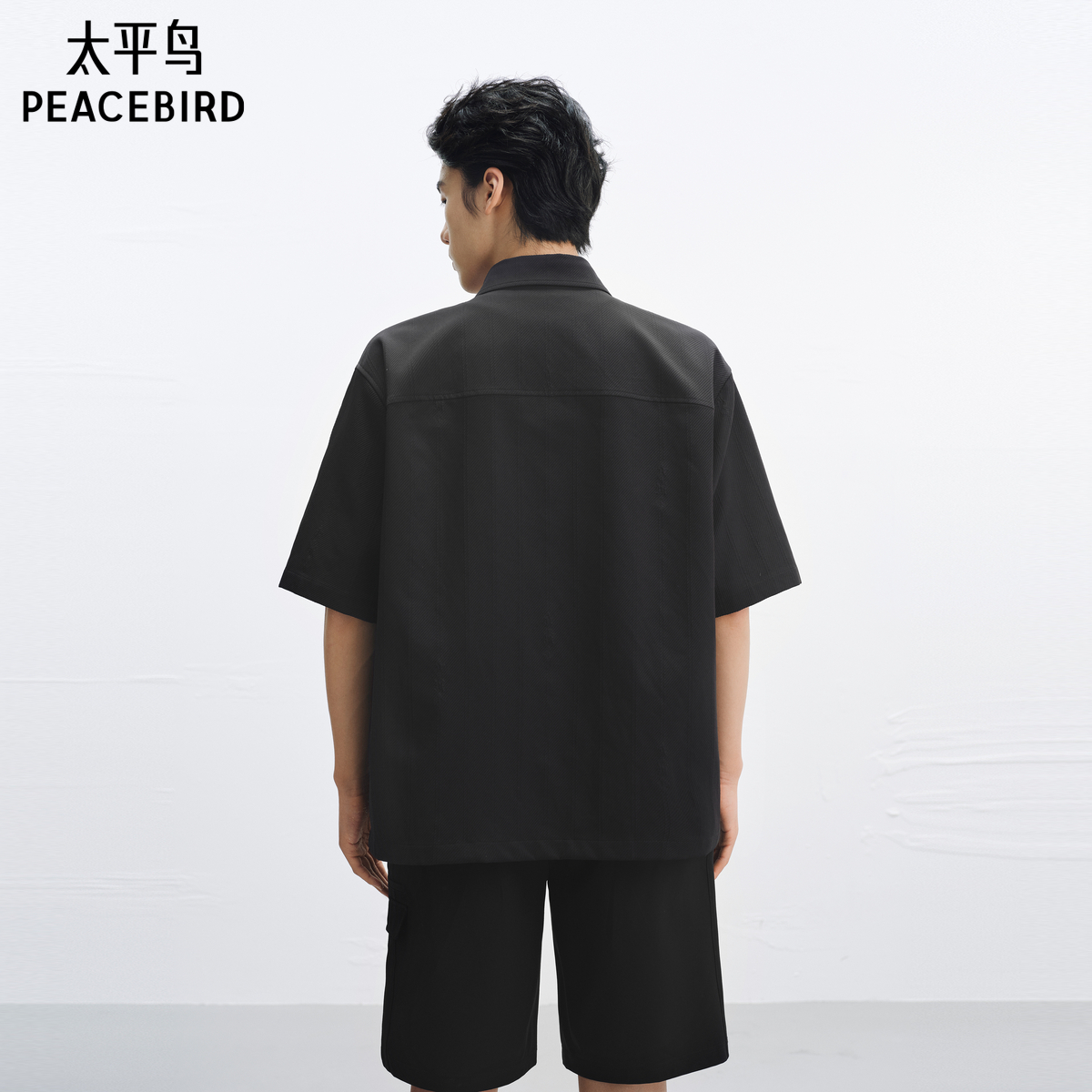 外穿式 提花黑色美式 衬衫 短袖 潮流休闲衬衣男 男夏季 太平鸟男装