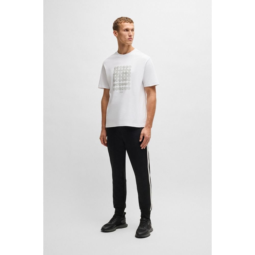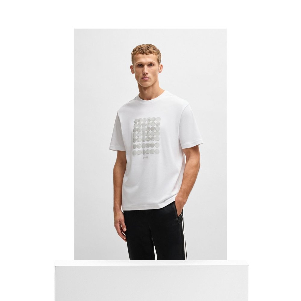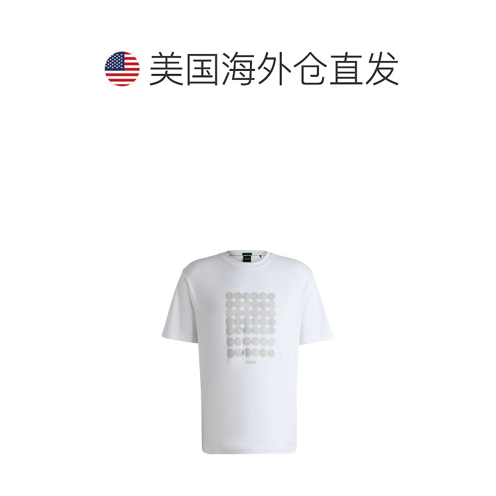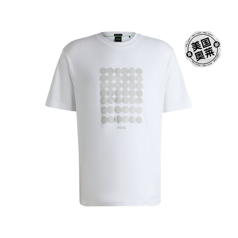 白色 棉质互锁T恤 美国奥莱直发 boss带圆形图案 自营