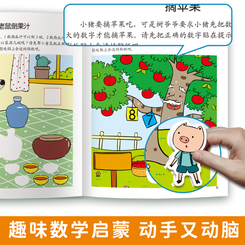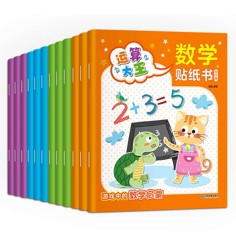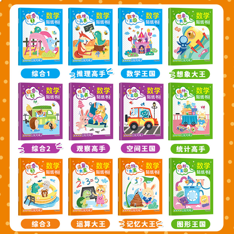 宝宝贴画书4 幼儿全脑开发数学思维逻辑训练入门早教书籍 6贴纸游戏书趣味数学 6岁贴贴画专注力训练 全套12册数学贴纸书儿童益智3