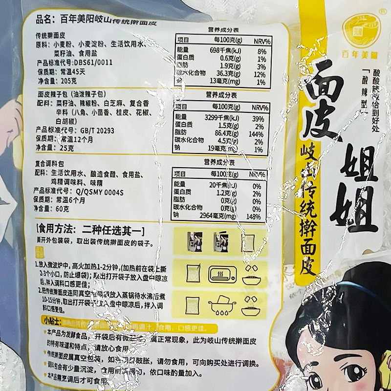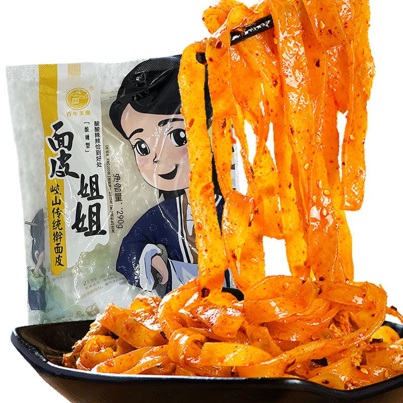 百年美阳岐山擀面皮姐姐陕西特产宝鸡小吃酸辣味细条凉皮真空袋装
