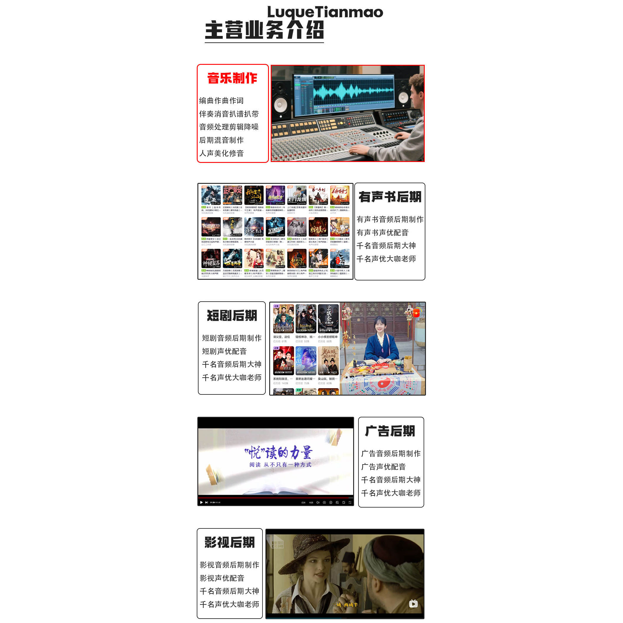 音乐伴奏制作编曲作曲作词降调消音扒谱歌曲音频处理后期混音剪辑