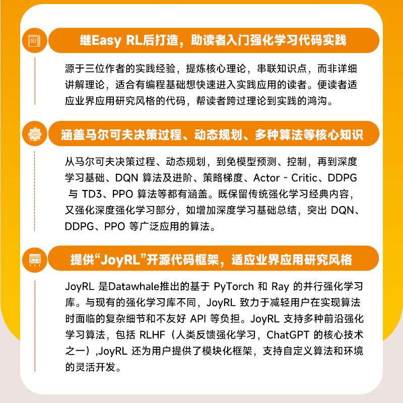 Joy 社旗舰店 RL:强化学习实践教程 开源框架强化学习深度学习基础机器学习 强化学习算法 动态规划 出版