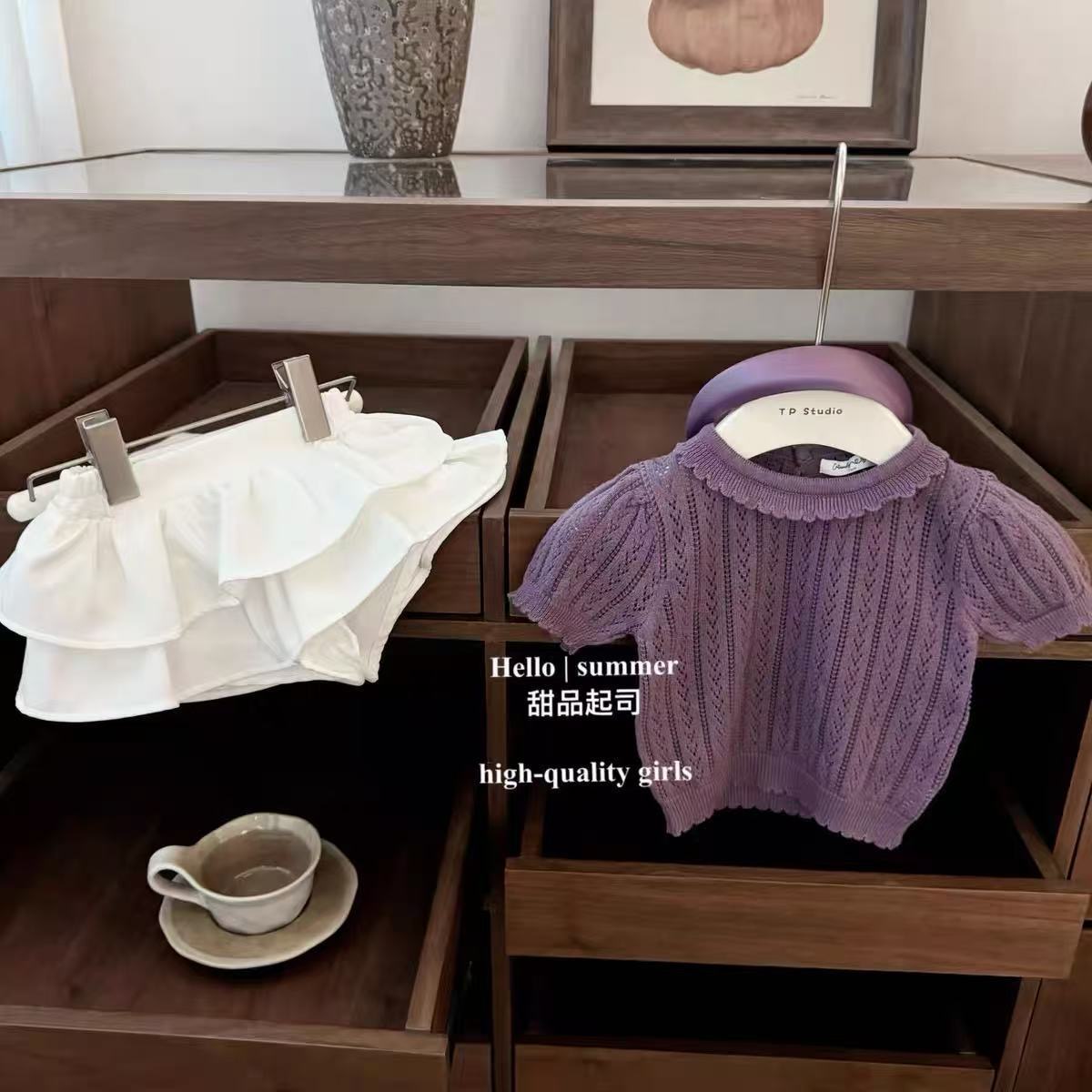 2025女宝宝镂空花边针织上衣a类 纯棉针织衫 女童洋气时尚 洋气时尚