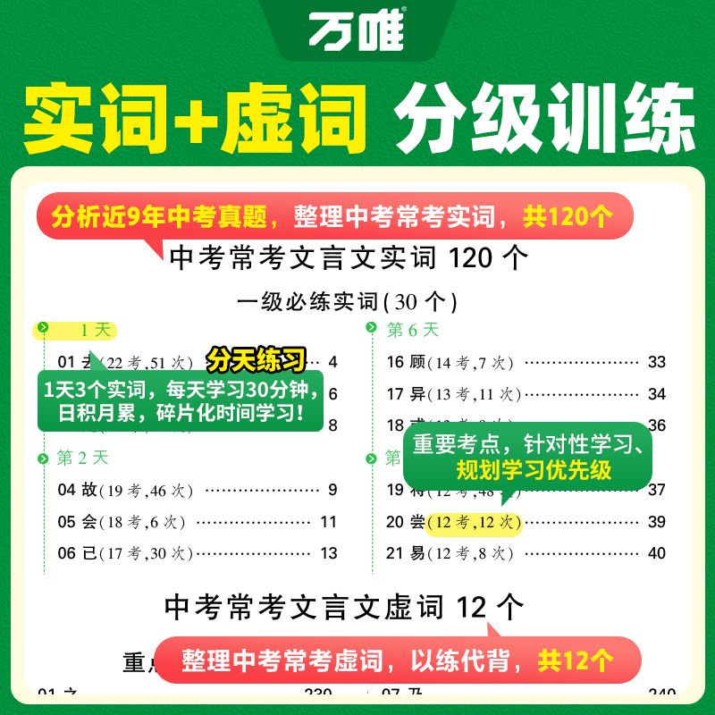万唯中考初中文言文实词虚词专项训练阅读理解全解七八九年级初一初二初三资料书2024万维语文古汉语常用字典词典文言文实虚词汇总