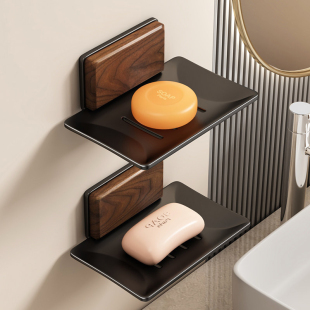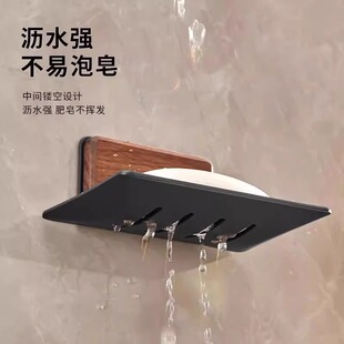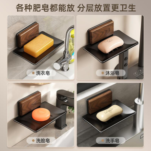 胡桃木肥皂盒免打孔壁挂式 香皂置物架浴室皂盒沥水架洗手台收纳盒