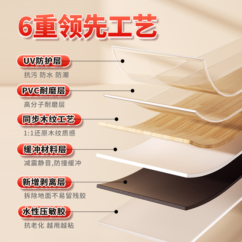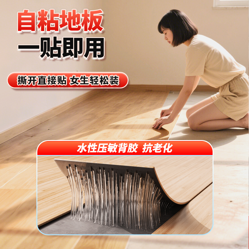 PVC地板贴自粘仿木瓷砖翻新改造加厚防水耐磨家用塑胶卧室地板革