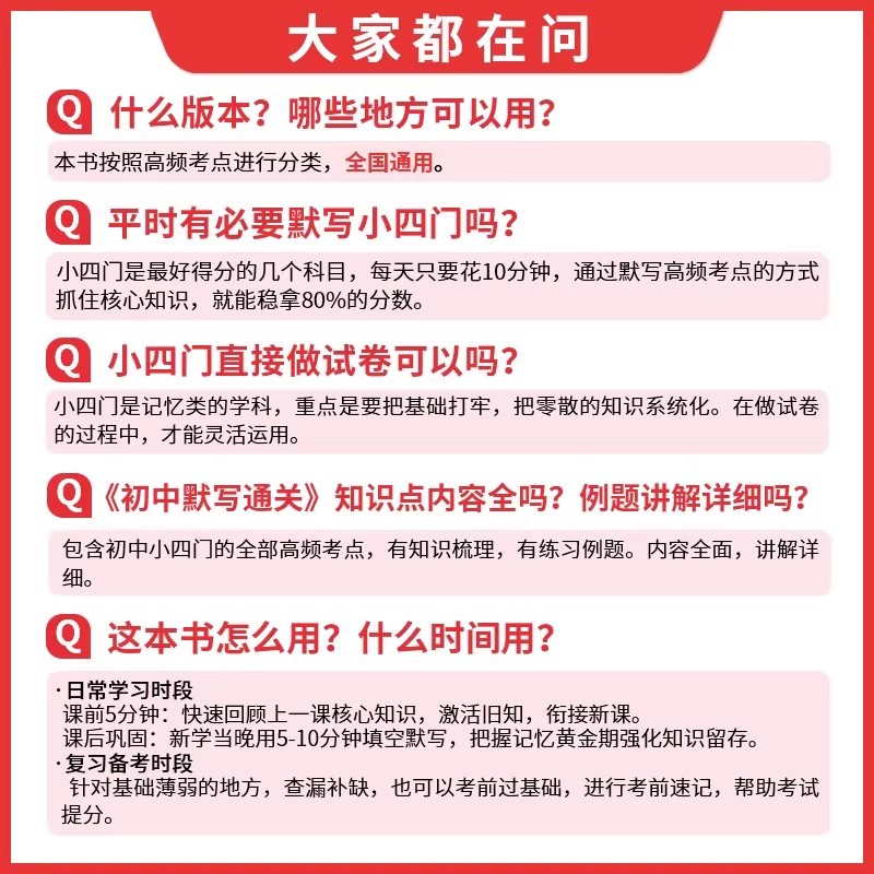 2026一本小四门默写通关初中七八年级政治历史地理生物基础知识大盘点高频考点清单初一初二政史地生速查速记手册中考总复习资料