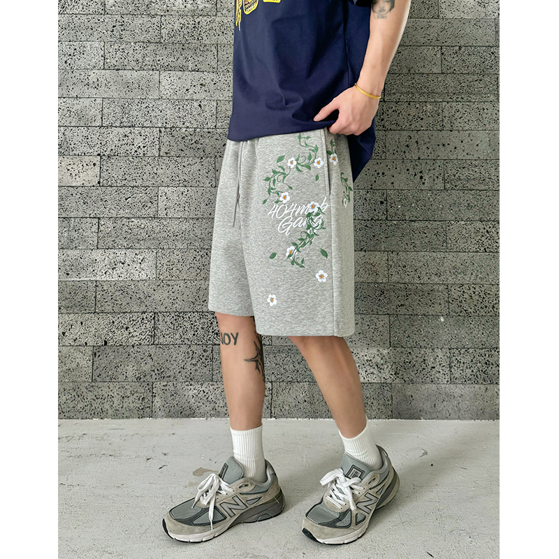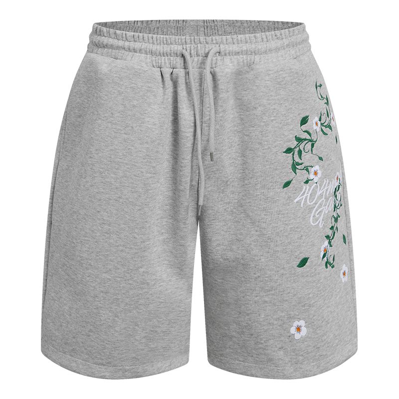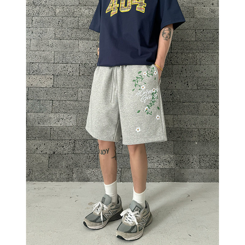 潮牌运动休闲情侣宽松五分裤 美式 子 男女款 404MOB重工花卉刺绣短裤