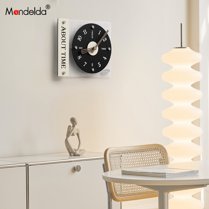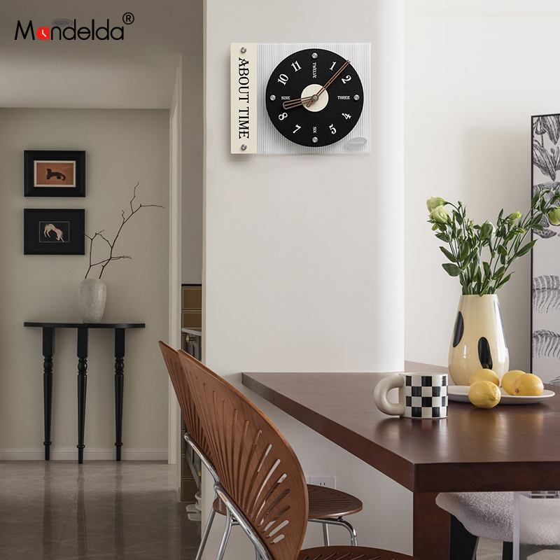 Mandelda免打孔奶油风艺术挂钟表客厅家用简约现代创意时钟装 饰墙