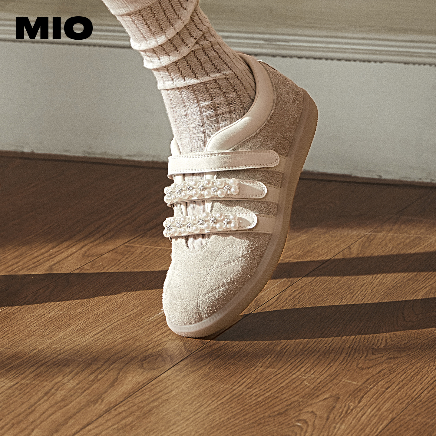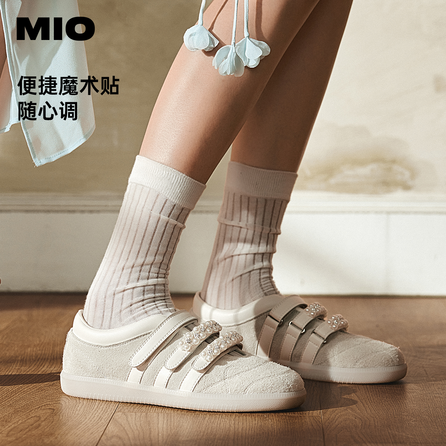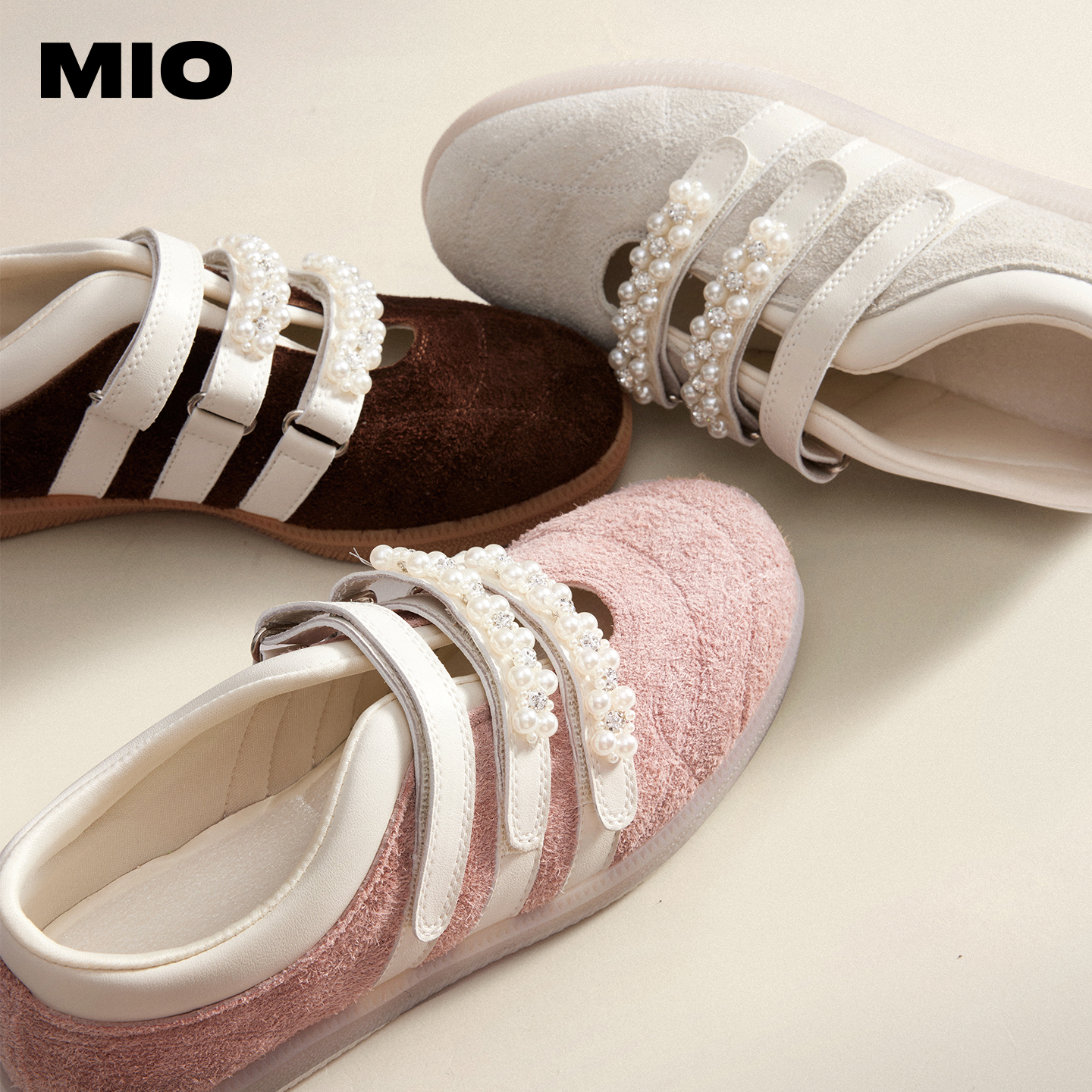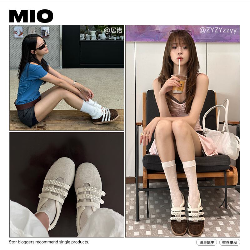芭蕾风浅口单鞋 MIO米奥玛丽珍珍珠魔术贴运动休闲鞋 双11预售