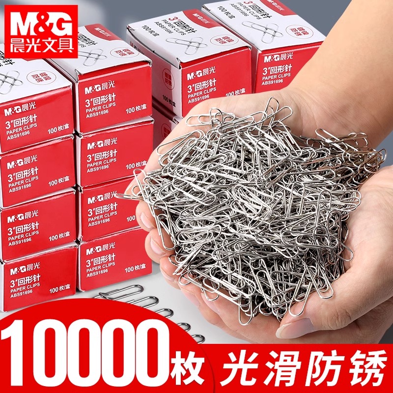 晨光回形针办公用品彩色书签创意可爱回型针夹子u形针镀镍防锈回旋针小号回行针 曲别针固定批发文具办公 包邮