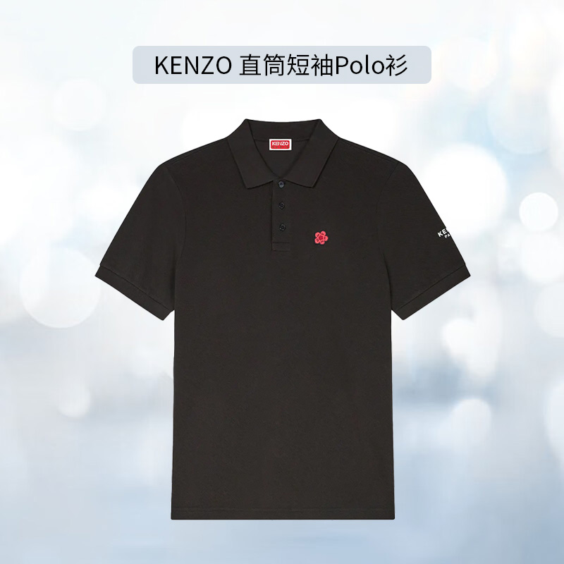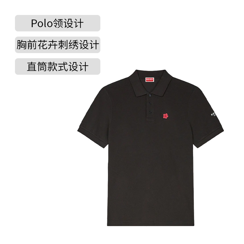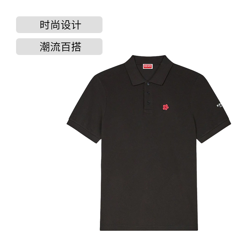 Polo衫 胸口徽标花卉刺绣黑色棉质短袖 Kenzo肯佐男款 纯棉 自营
