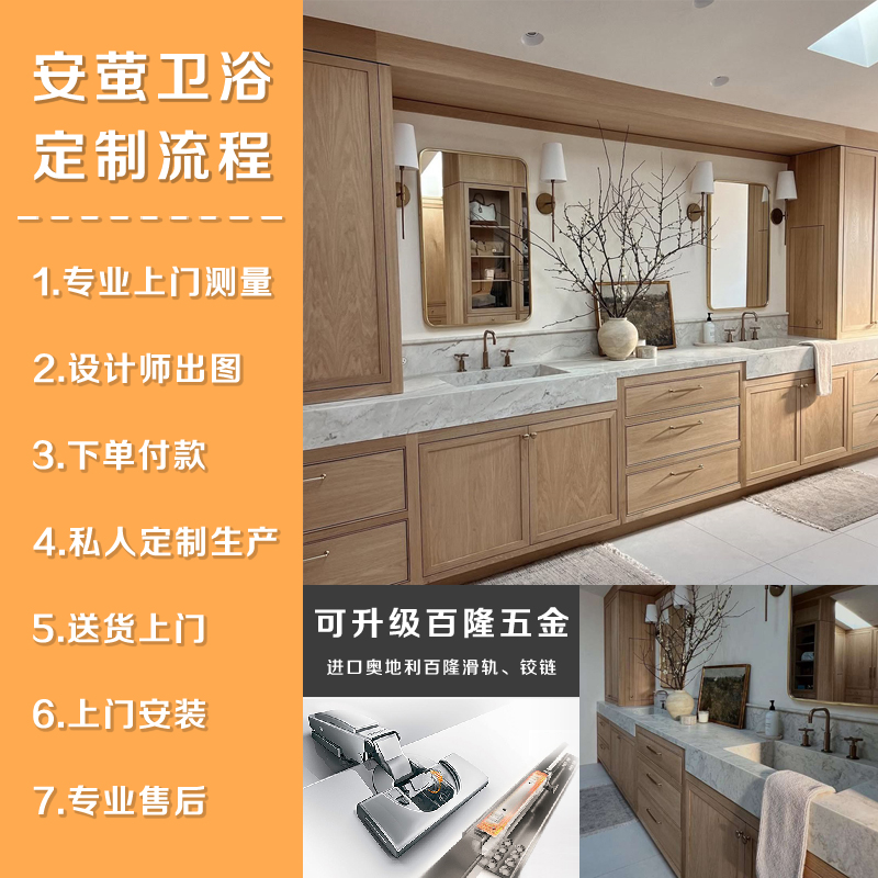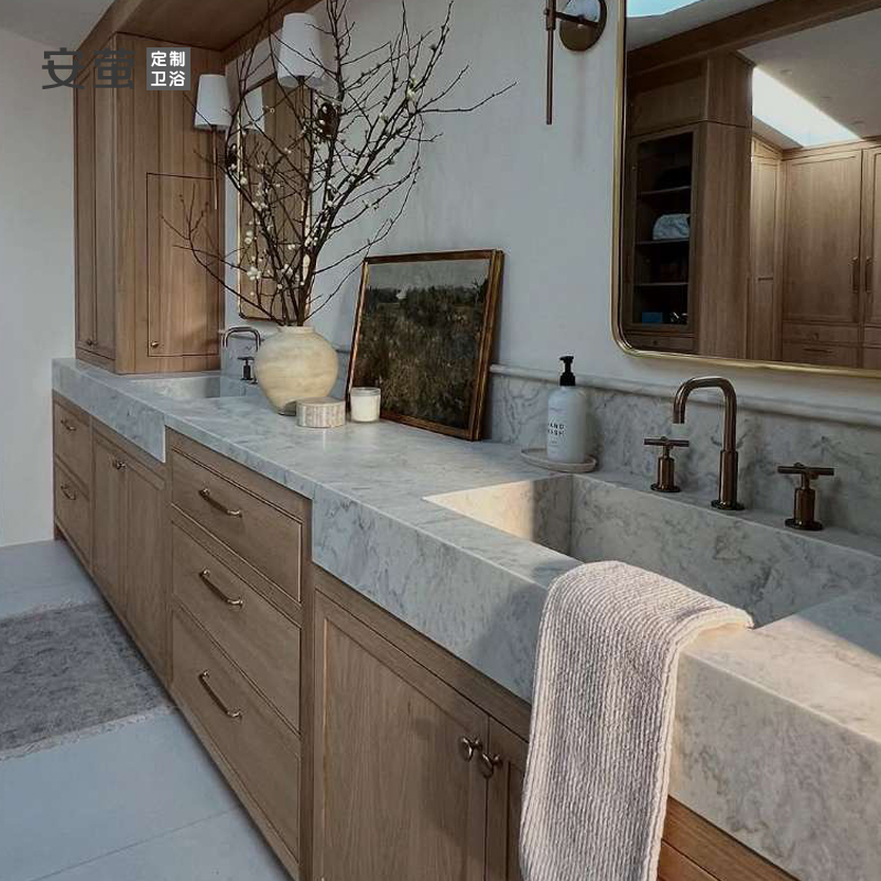 原木风浴室柜组合美式 乡村卫生间落地洗手脸面池盆实木定制洗漱台