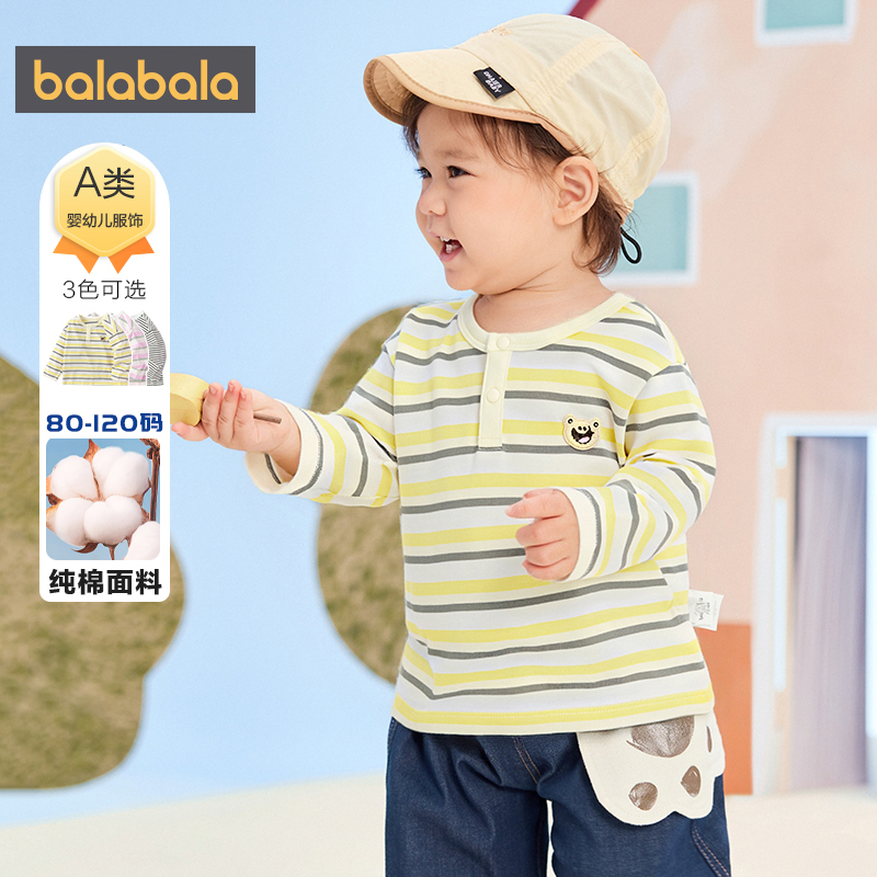 男童女童条纹纯棉打底衫 巴拉巴拉宝宝长袖 童装 2025新款 t恤春秋装