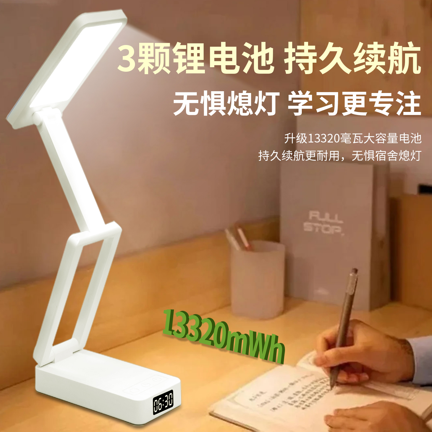 小台灯学习专用宿舍灯学生折叠灯书桌时钟充电式 超长续航护眼神器