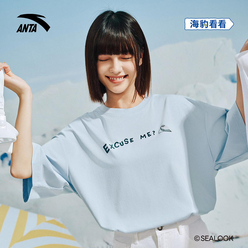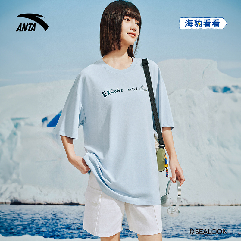 新款 t恤男女夏季 潮流宽松运动上衣 凉感短袖 安踏×海豹看看联名