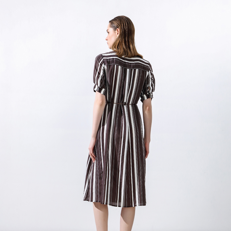 收腰连衣裙 大摆衬衫 Keywearcloud奇威复古气质纵向条纹洋装 中长款