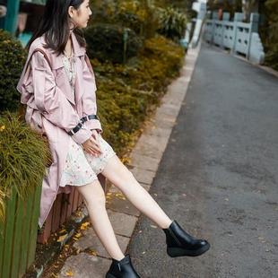 达芙妮厚底马丁靴女款 春秋高跟短靴女瘦瘦靴黑色靴子短靴 2025新款