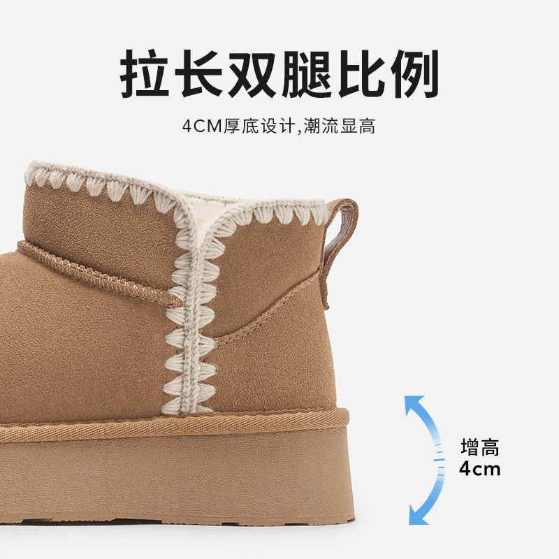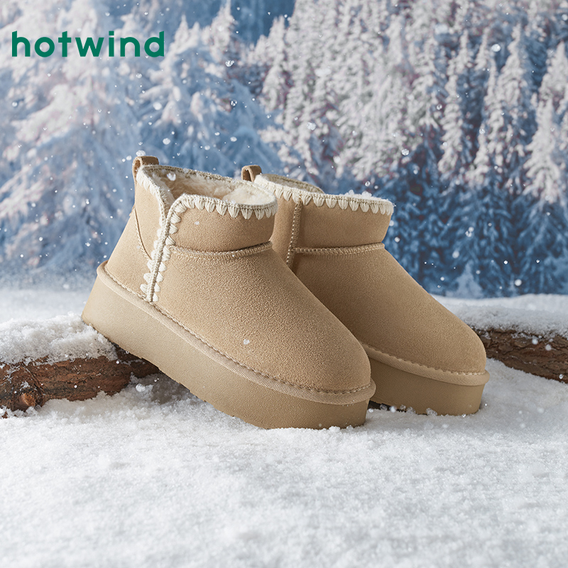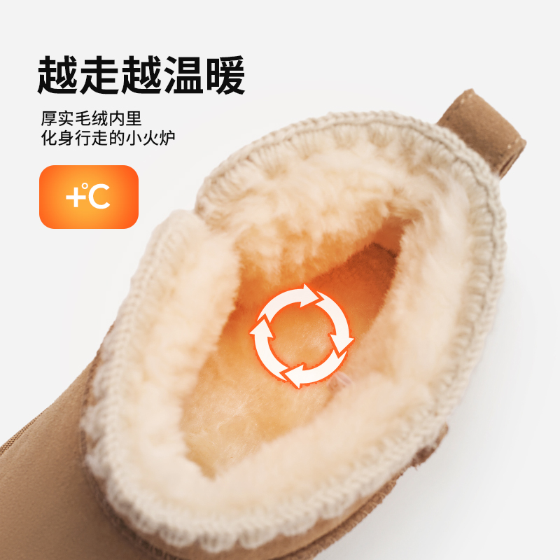 休闲靴厚底户外雪地靴百搭加绒靴子 女士时尚 热风2024年冬季 新款