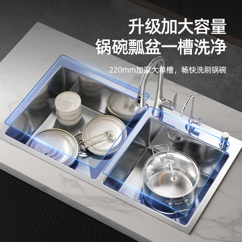 东鹏4MM加厚304不锈钢洗菜盆拉丝双槽大尺寸厨房水槽 国补15%