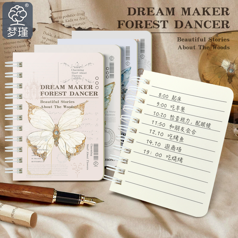 梦瑾新款 记事本学生随身携带迷你口袋本随手记单词本小号记录日记本便签本 A7复古线圈本小笔记本子便携式