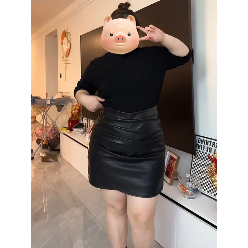 不规则褶皱PU半身裙女秋冬百搭小皮裙大码 遮肚显瘦包臀短裙A字裙