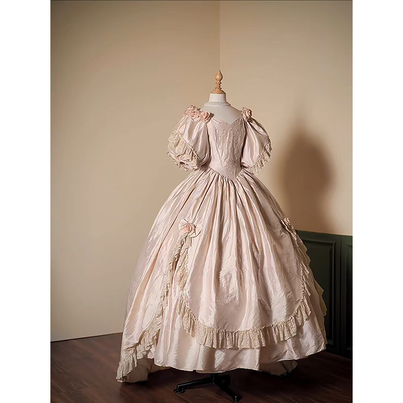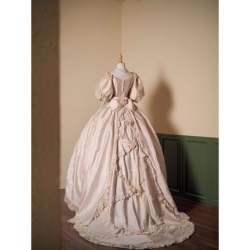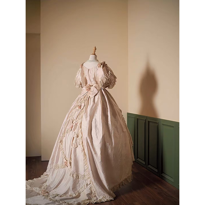 婚纱新娘新款 古董重工缎面公主裙影楼拍摄写真复古轻婚纱礼服 法式