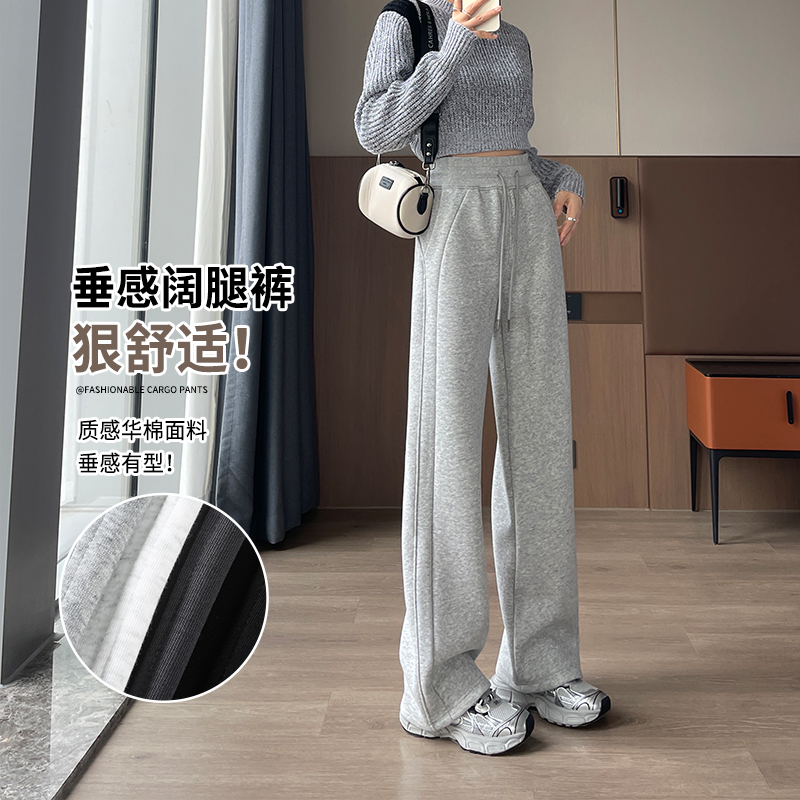 子运动卫裤 黑色加绒裤 休闲小个子镰刀裤 加厚香蕉阔腿裤 子女秋冬季