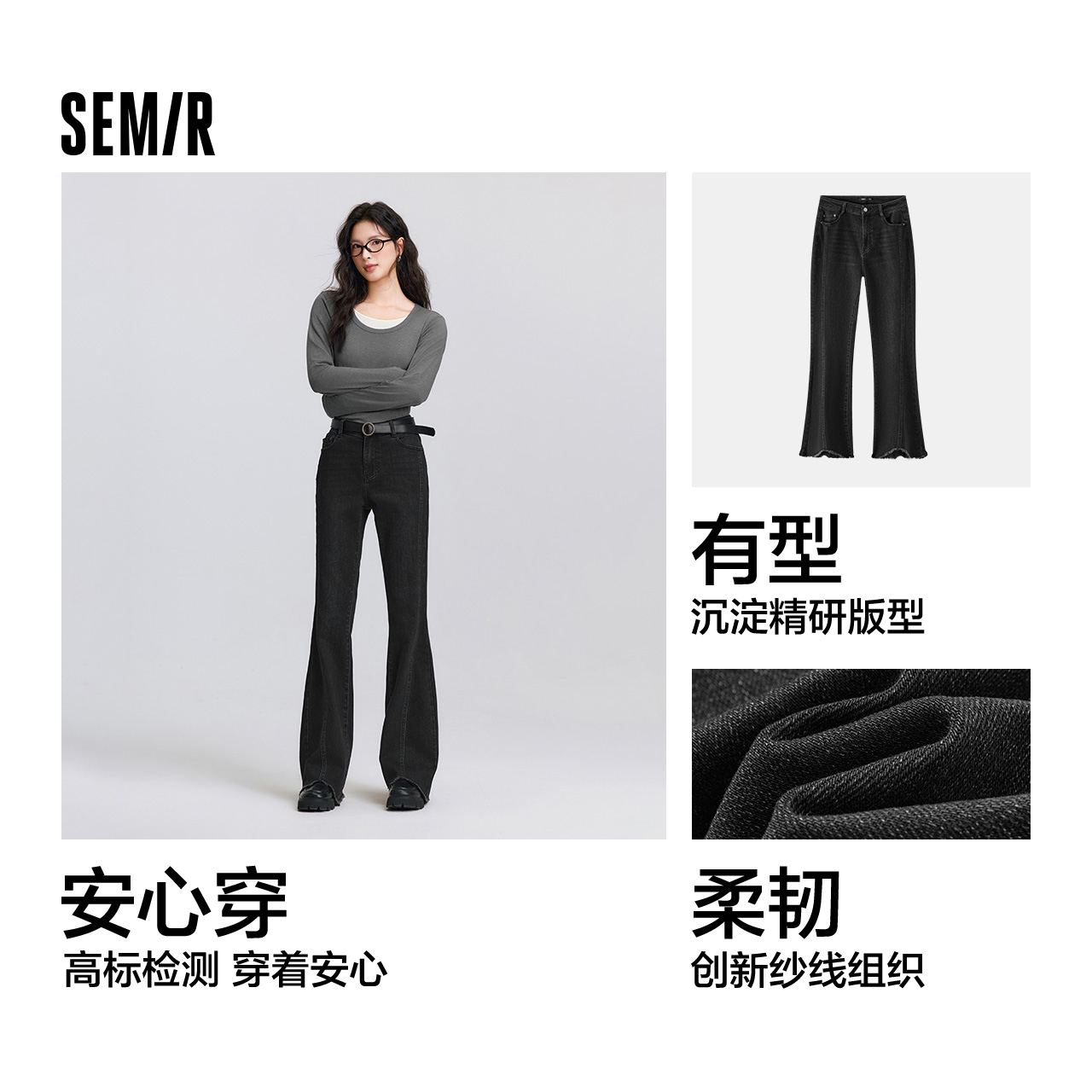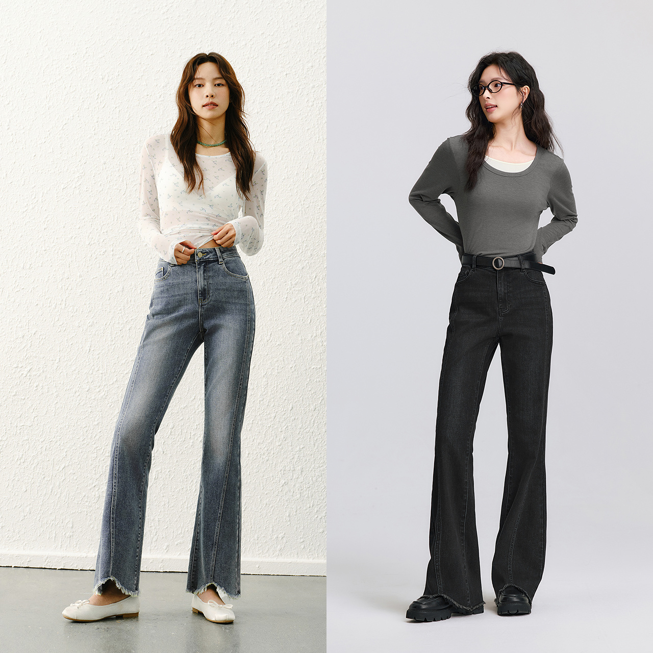 女街头长裤 森马牛仔裤 2025春季 新款 森柔牛仔 毛边喇叭裤 商场同款