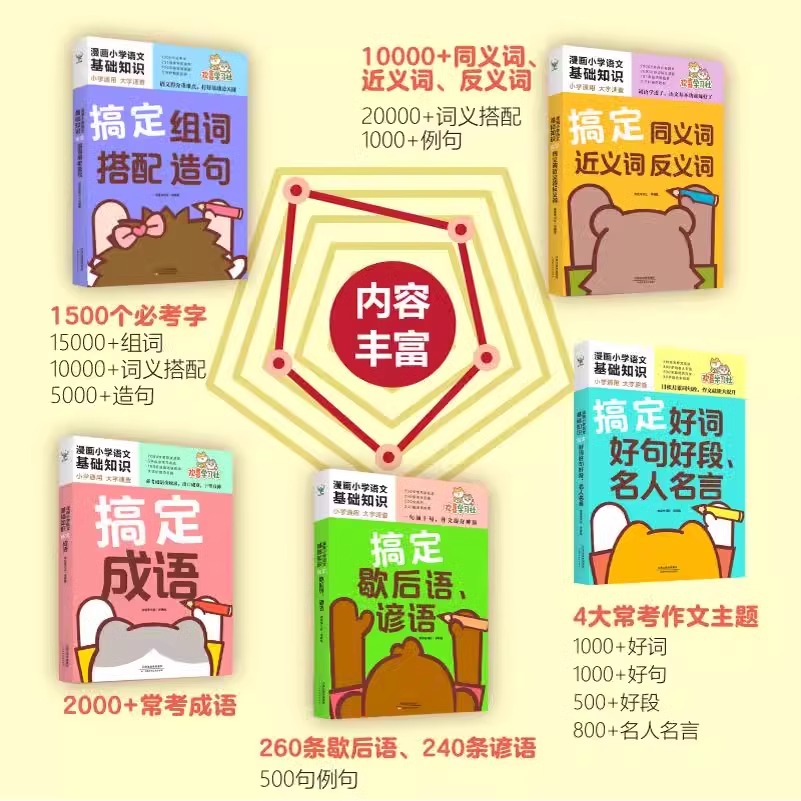 6年级通用搞定成语歇后语谚语好词好句好段名人名言组词搭配造句同近反义词课外辅导 漫画小学语文基础知识系列全5册1 官方正版