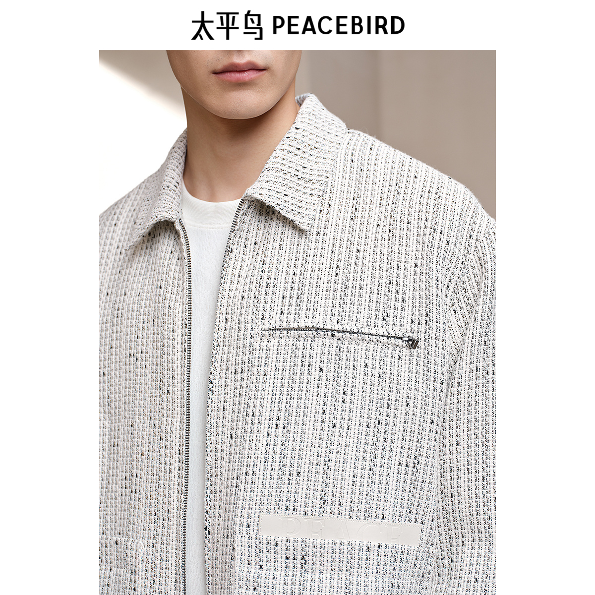 肌理感休闲外套拼接翻领茄克 新款 太平鸟男装 小香风夹克2025秋季