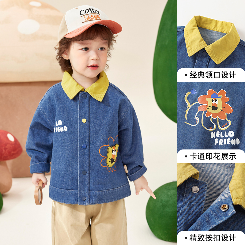 咔咔熊猫男童外套婴儿衣服翻领牛仔春装 春秋女宝宝儿童小童上衣