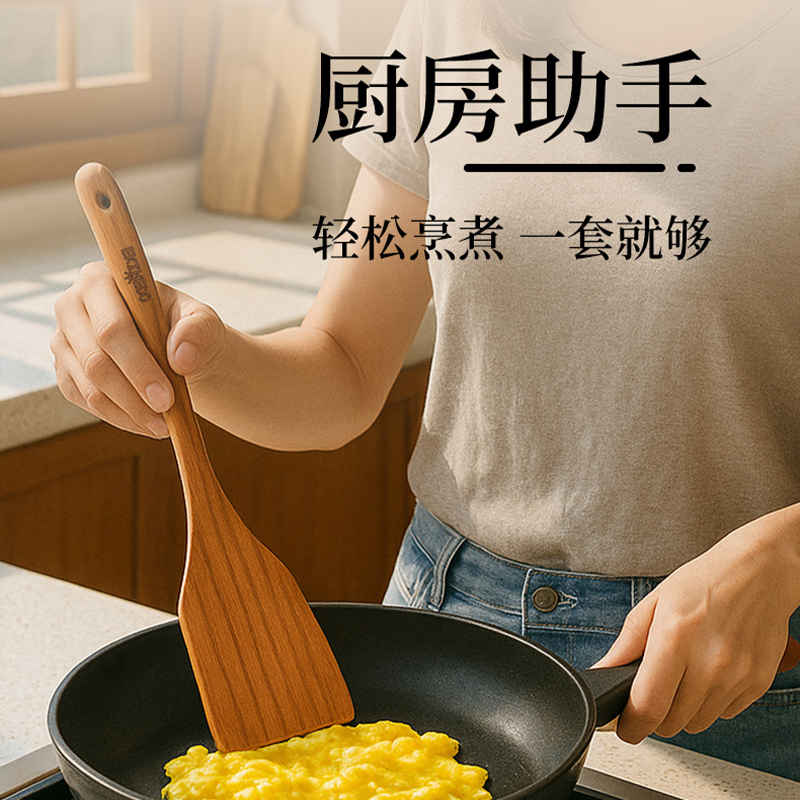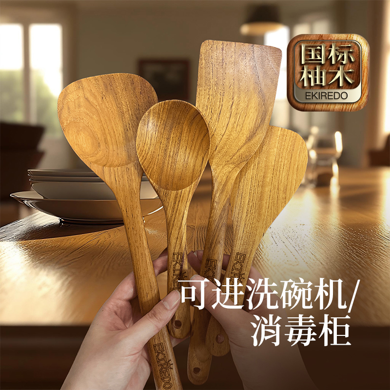 EKIREDO柚木炒菜铲实木锅铲子木铲不伤涂层饭勺汤勺厨具 自营