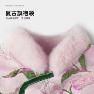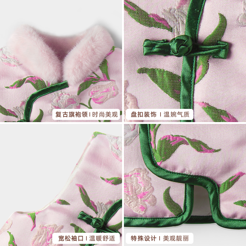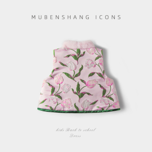 木本尚女宝宝汉服马甲背心2025新款 女童拜年服夹棉加厚粉色提花