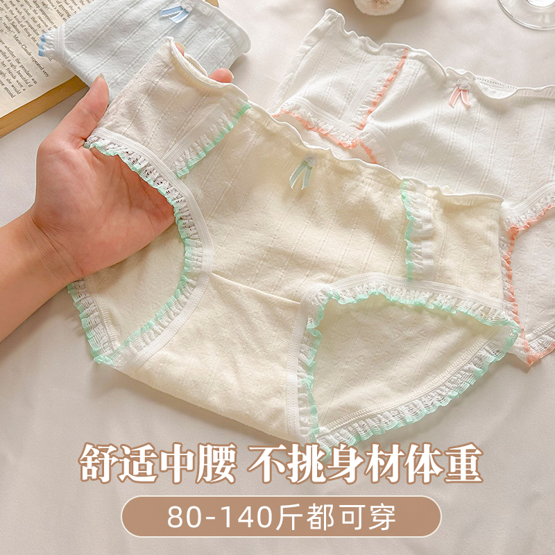 秋冬 2024新款 内裤 女士纯棉全棉裆中低腰无痕甜美日系少女生三角裤