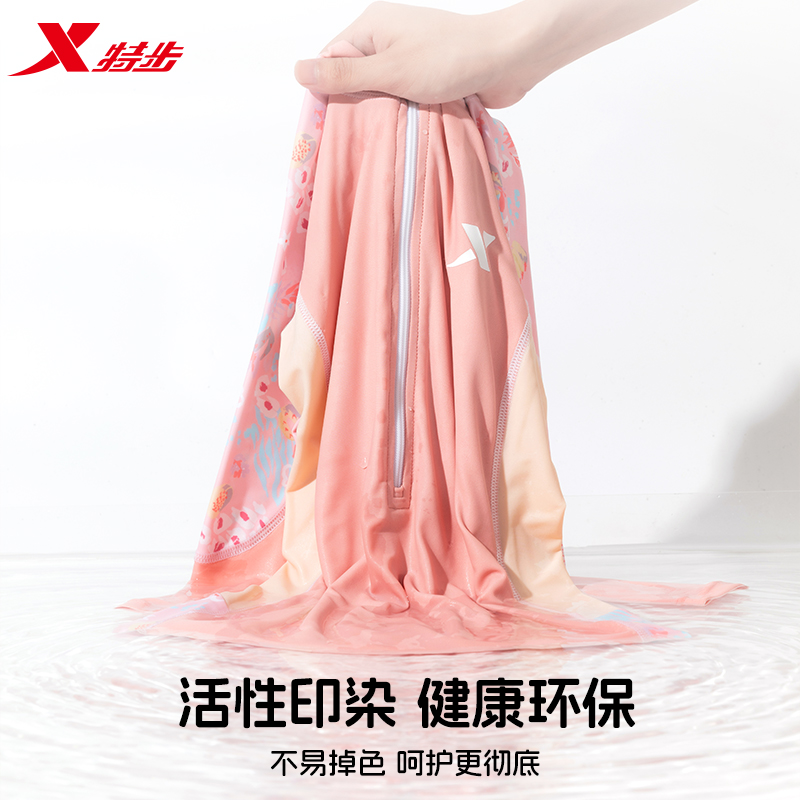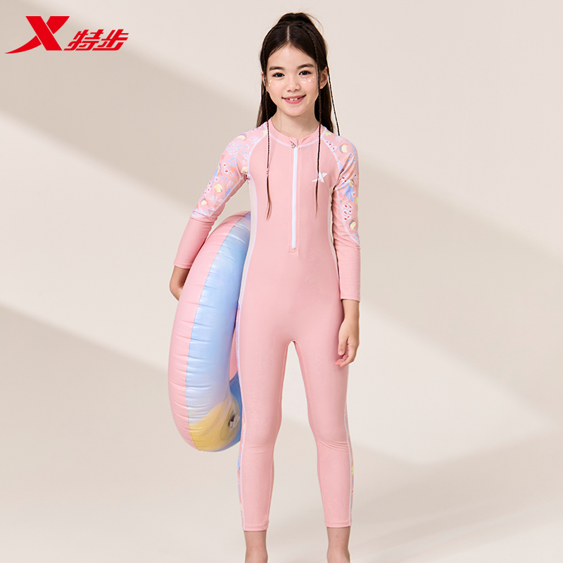 连体保暖专业训练游泳装 长裤 长袖 特步儿童泳衣女孩中大童2024新款