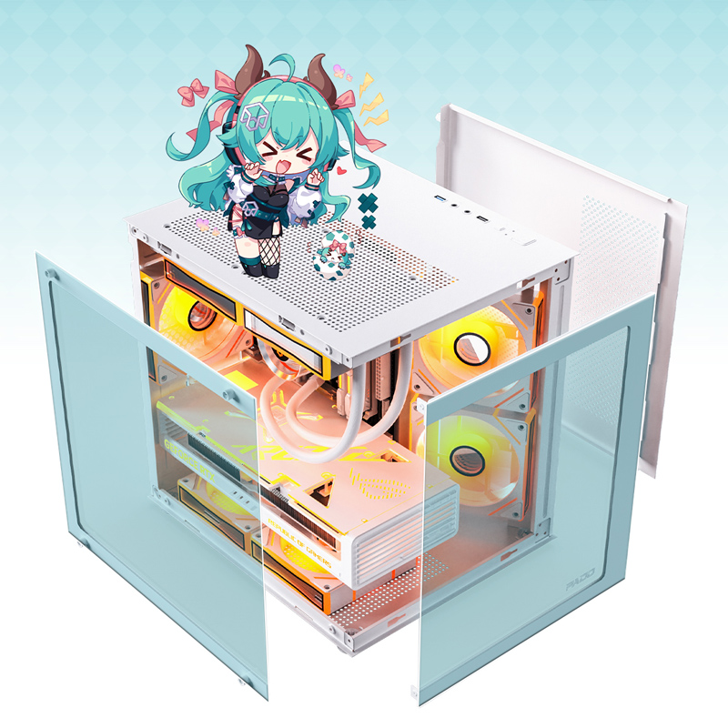 爱国者星璨岚星璨小岚海景房机箱台式 机MATX白色无立柱电脑主机箱