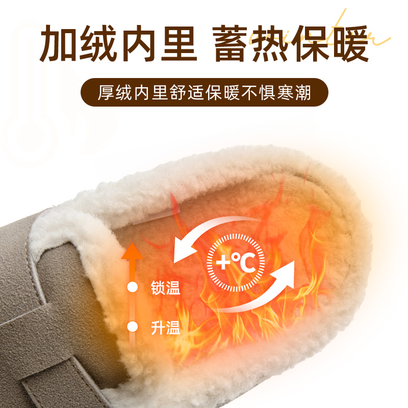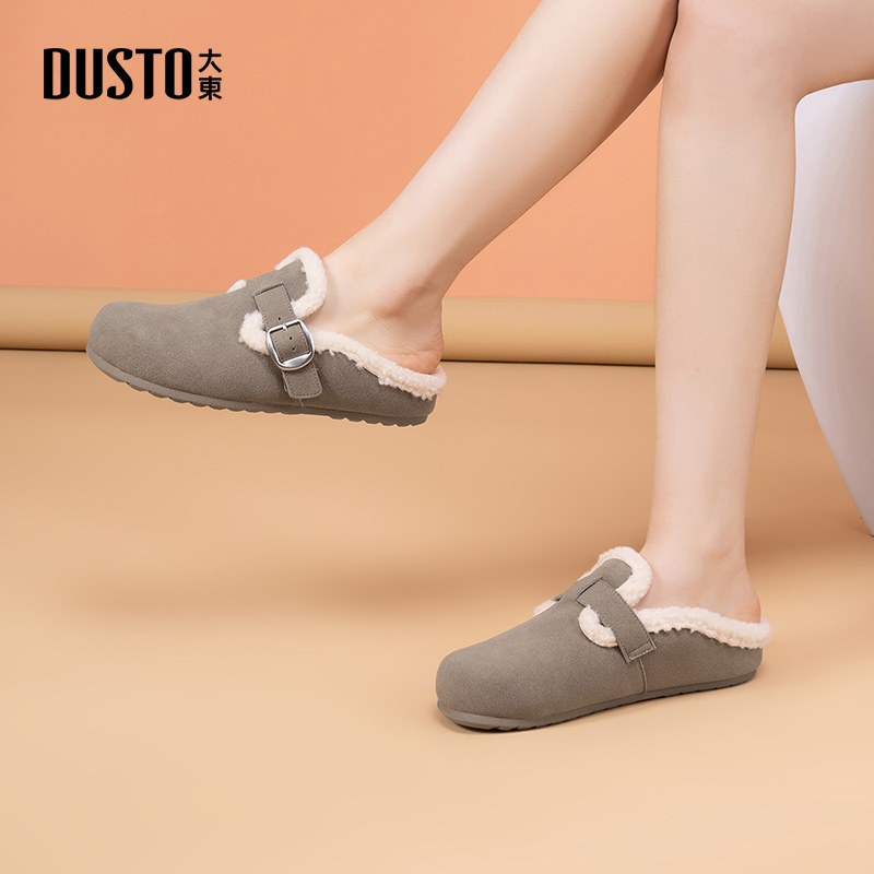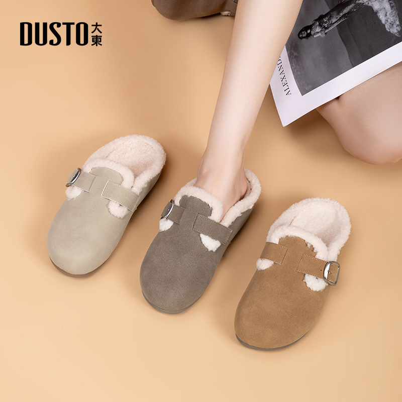 新款 2025冬季 加绒保暖毛毛鞋 平底一脚蹬博肯鞋 大东女鞋 棉鞋 勃肯鞋
