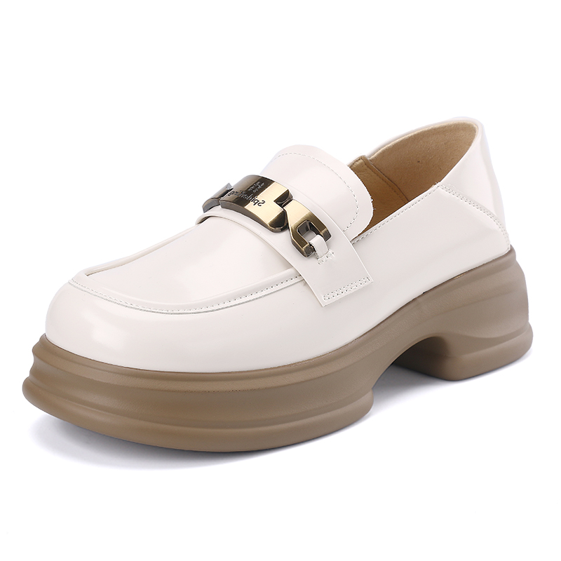厚底增高英伦风小皮鞋 新款 一脚蹬 女2025春季 蜘蛛王漆皮亮面乐福鞋