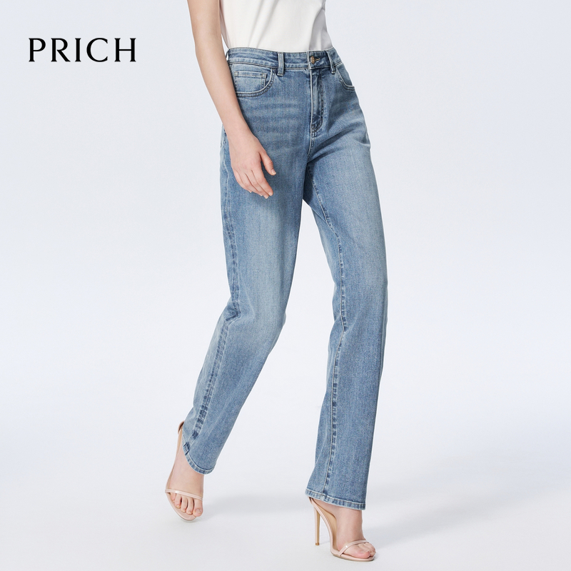 脚可翻边两穿休闲廓形长裤 裤 女 直筒复古牛仔裤 PRICH时尚